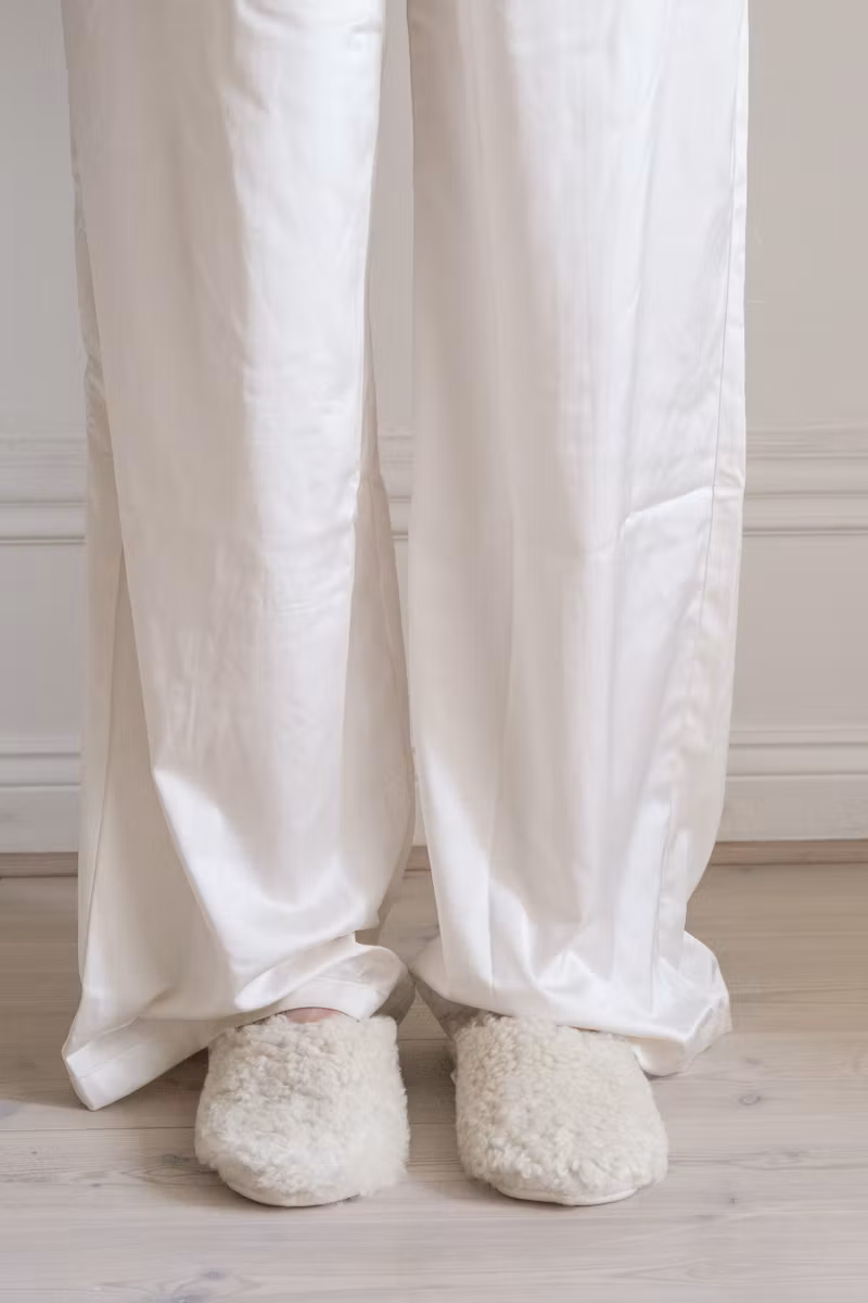 Natural leather slippers, skillfully stitched by true artisans using techniques that are passed down from generations. The wool of shearling adapts to the body’s natural temperature, keeping feet fresh during the warmer months, whilst warm and cosy in winter. Lined with buttery soft natural leather, each slipper moulds perfectly to the shape of your foot. Please note that this is a handmade item, therefore slight imperfections may be found, but we find this only adds to their charm.